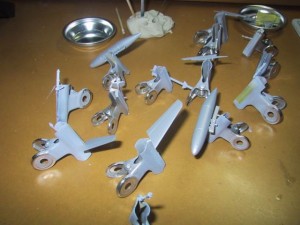 機体の基本色はシルバーなのですが、ガルグレーを混ぜたシルバーを塗っています。入間基地に展示されている実機をみると無塗装の金属地ではなく銀塗装のよ うに見えたので、その雰囲気を表現してみたいと思いました。ただし、実際に使用されていた時期はどのような塗装っだたのかは不明です。今となってはあまり に古い機体なので稼動していた当時のカラー写真はネット上でも見つけることが出来ませんでした。