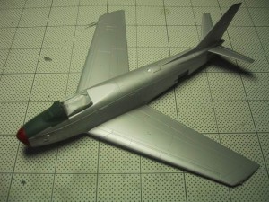 機銃の発射孔周辺とエンジンノズル周りは機体と質感の違う金属です。塗装で違いを表現します。機銃発射孔周りはシルバー+スモークグレーで塗っています。エンジン周りはシルバー+黒鉄色とシルバー+焼鉄色を塗っています。