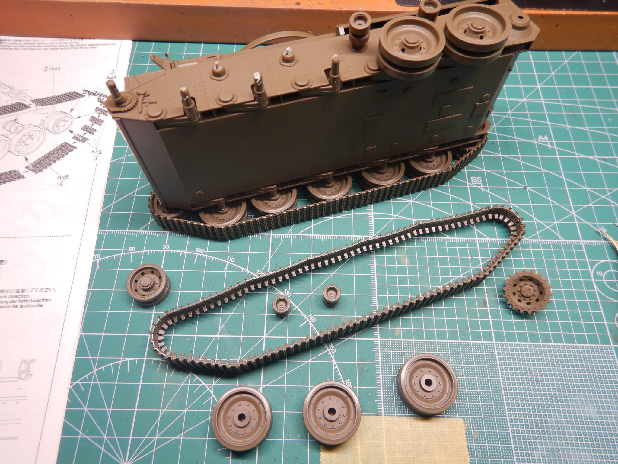 転輪の数は少なめなです。転輪の組み立ては単調な作業になりがちなのでちょっと助かります。(^^;