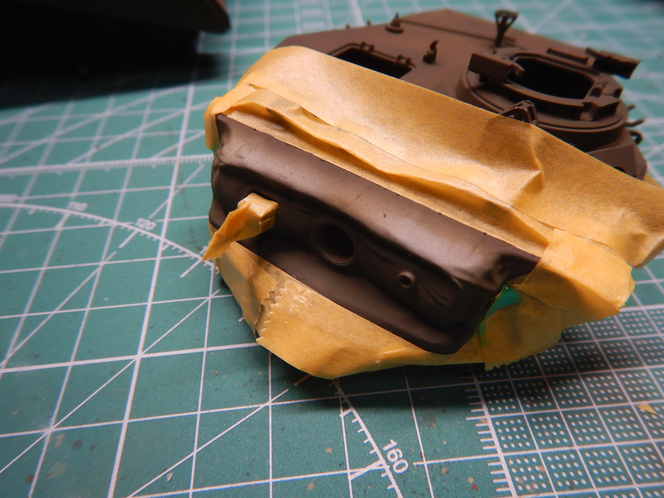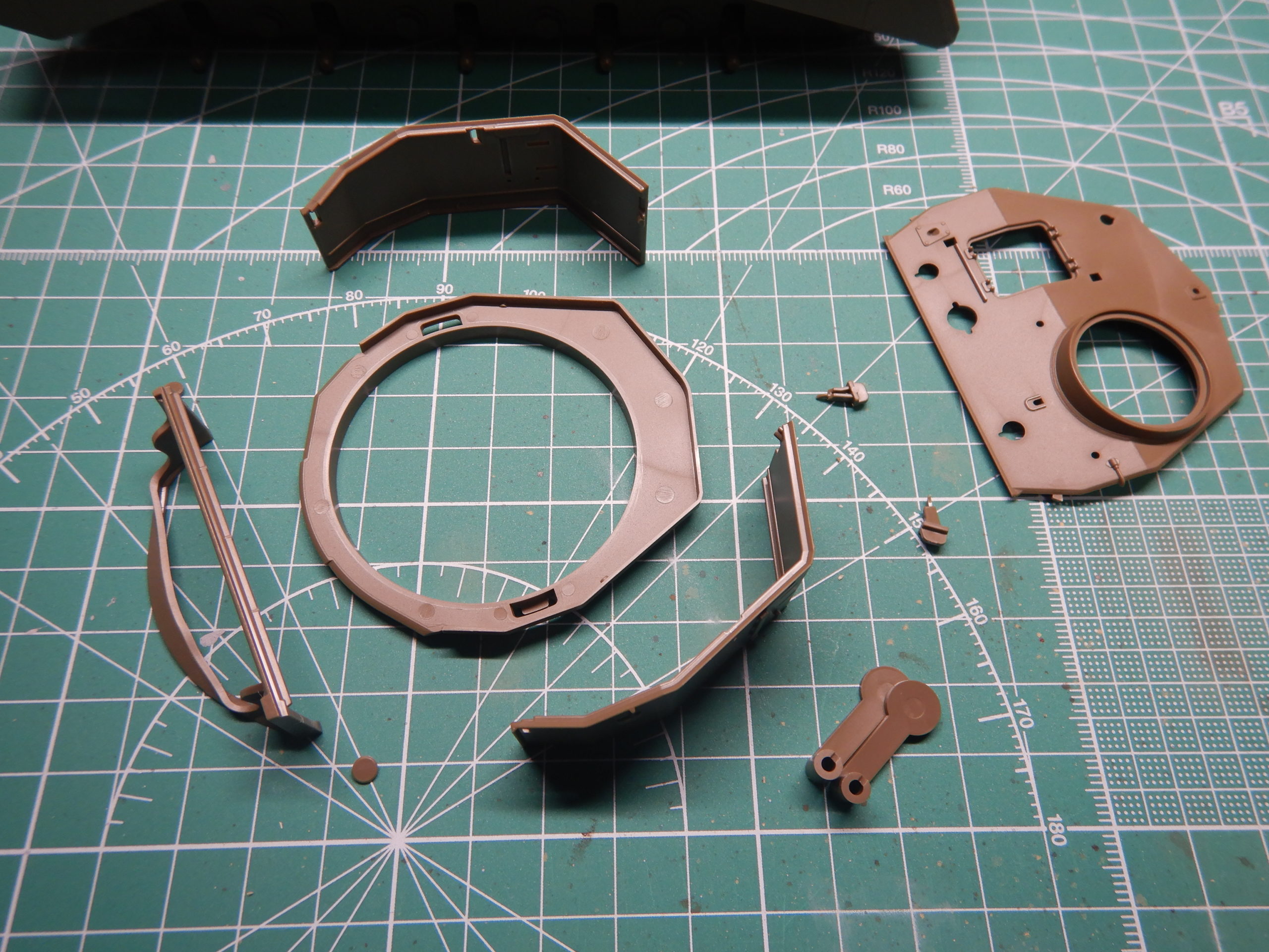 砲塔付け根のカバーは布製なので色が異なります。これは接着前に塗装したほうが楽だと思います。
