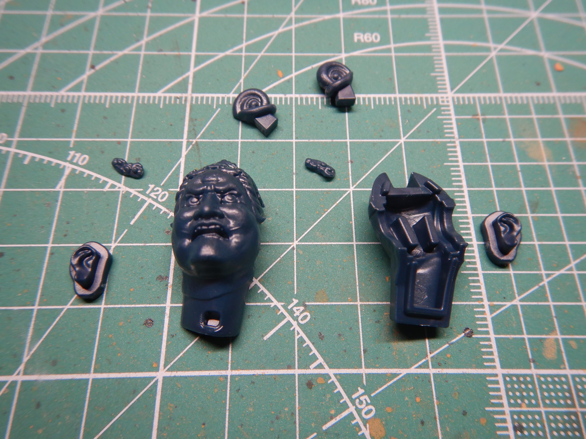 顔はクレオスのウェザリングカラー、マルチホワイトを塗ってから、乾燥後に適度に拭き取っています。装飾の金色をドライブラシの要領で塗っています。