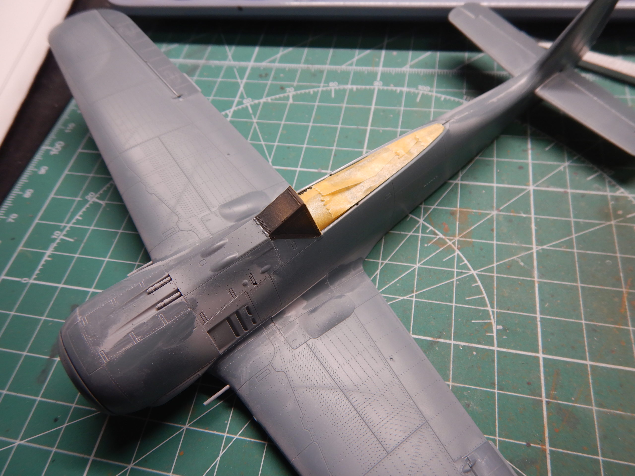 機首全体を組み立てた状態です。キャノピー前部も接着して塗装に入りました。