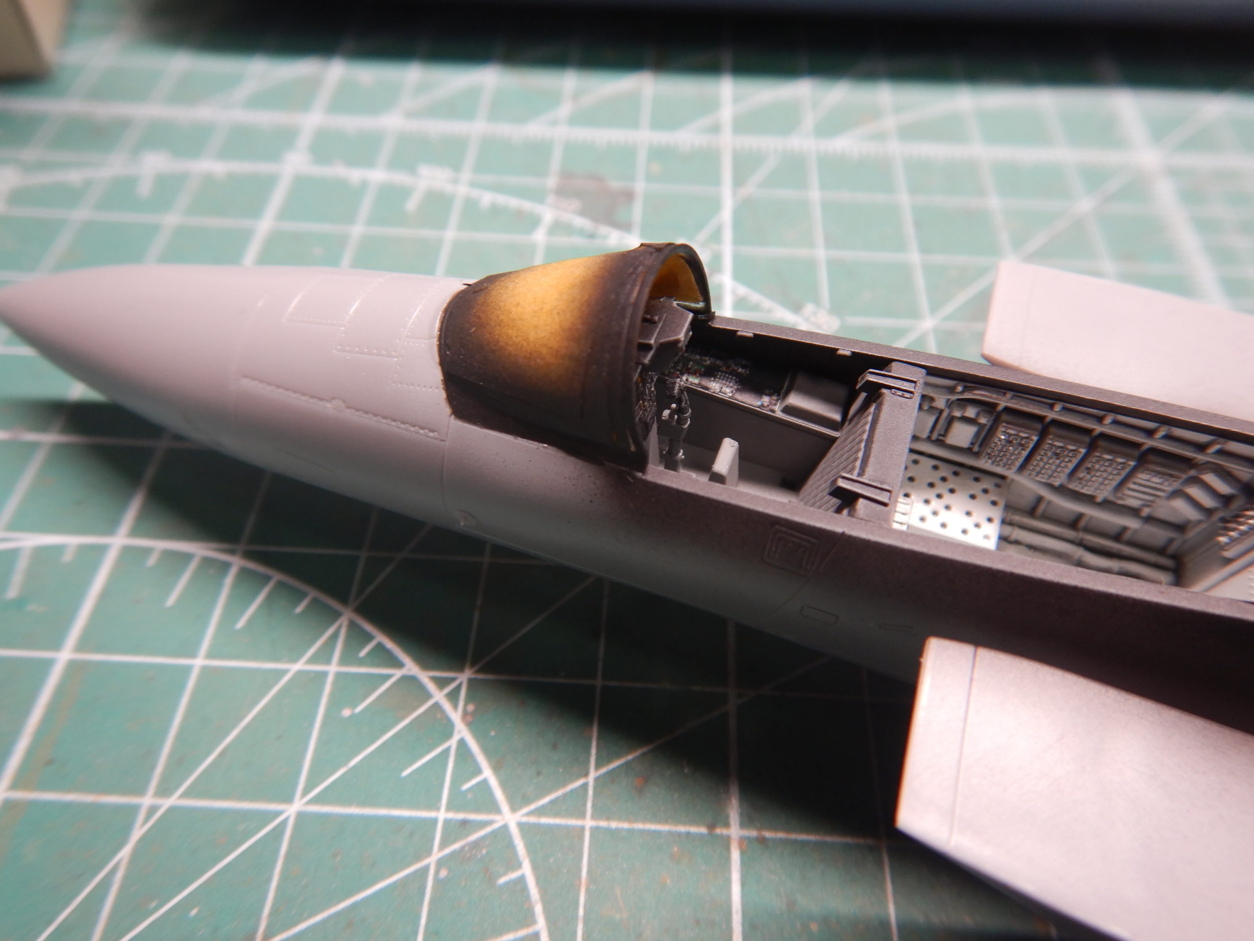 コックピット周りの塗装を終えた状態です。コックピット後ろの空間も非常に詳細に再現されています。