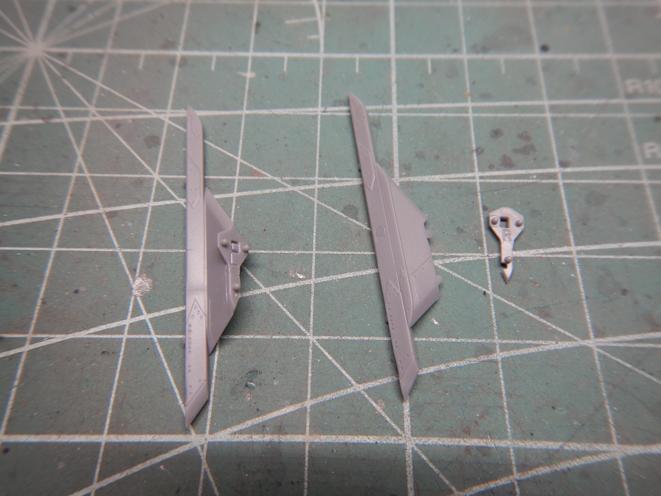 後部エンジンノズルのハッチ部分です。本キットはノズルを下方向に曲げているため、開いた状態になります。