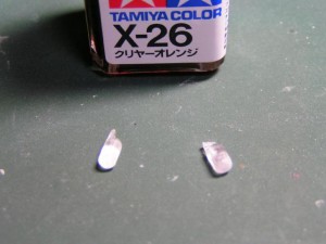 ナンバープレートはプリンタで印刷したものを貼り付けています。サイドのウィンカーはクリアパーツでは無いため、シルバーを塗った後に、クリアオレンジを厚めに流し込んで、それっぽく仕上げています。